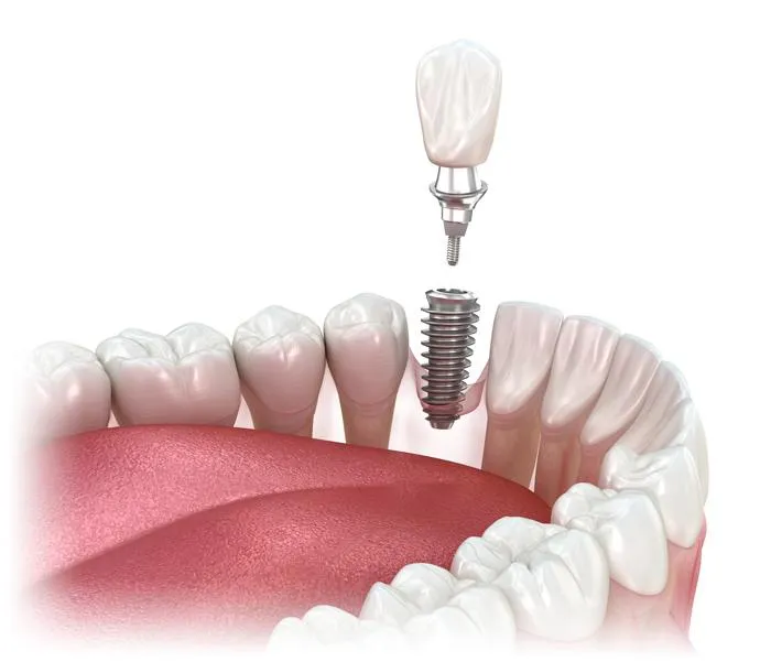 A dental implant is a titanium post that is surgically placed into the jawbone to serve as a stable foundation for a replacement tooth or bridge.